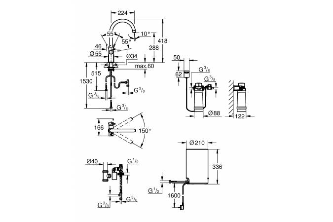 - Поворотный теплоизолированный трубкообразный излив на 150*