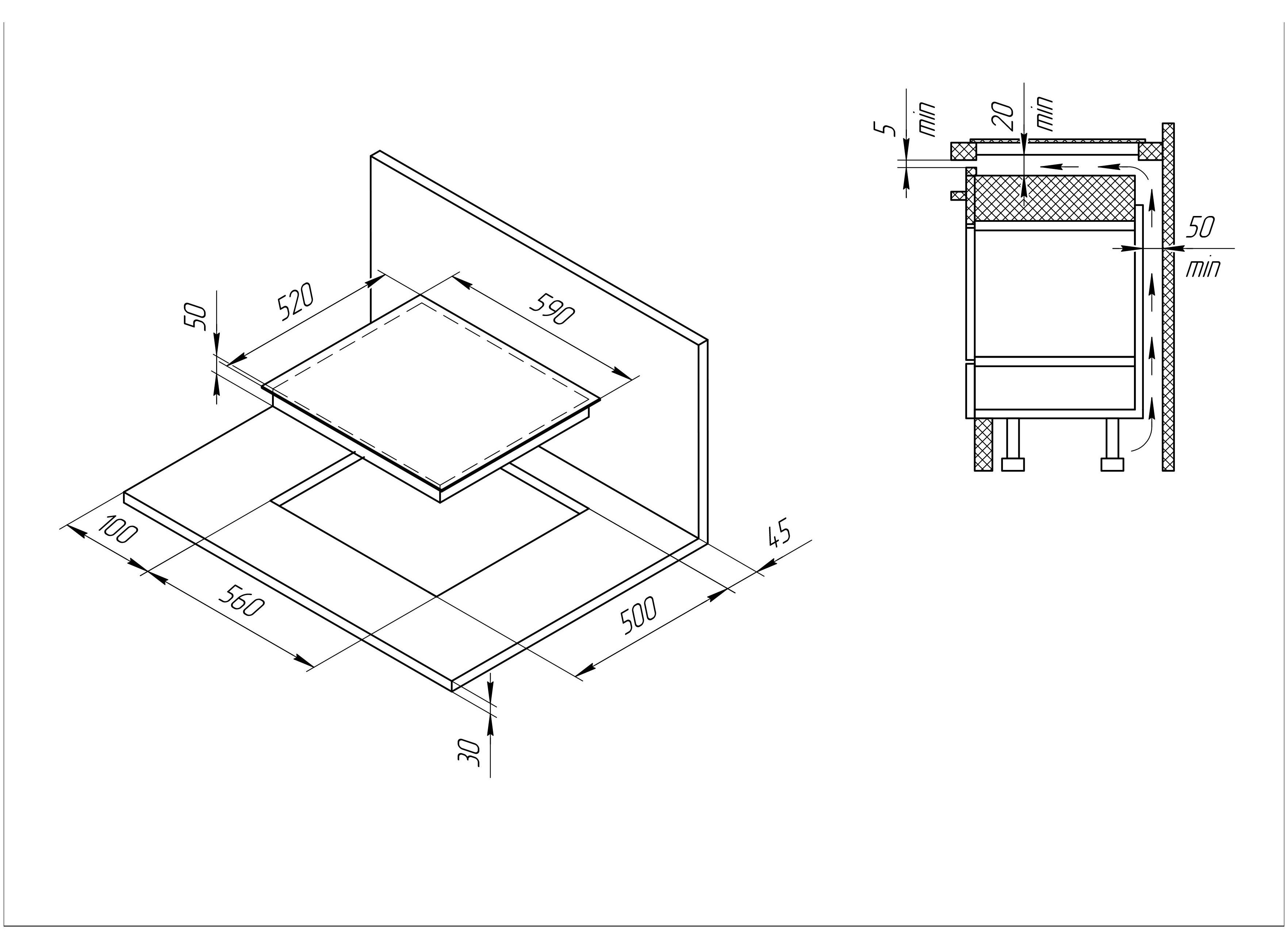 - Размеры для встраивания (ШхГ): 56 x 49 см