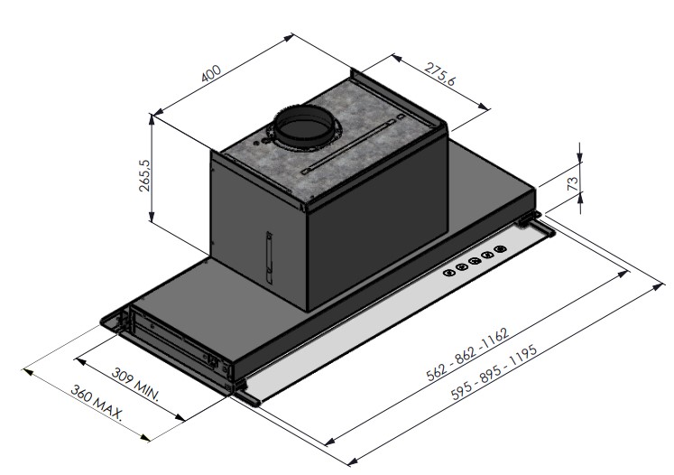 Размер вытяжки: 33.85 х 59.5 х 36 см.