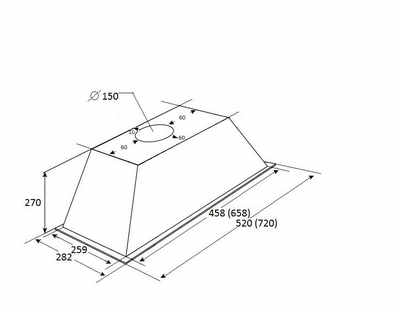 Размеры вытяжки (ВхШхГ), мм: 298 х 520 х 282
