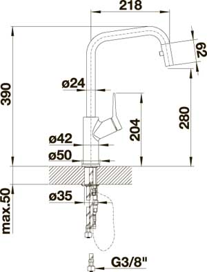 Легкое подключение гтбкими шлангами 450 мм с гайкой 3/8"