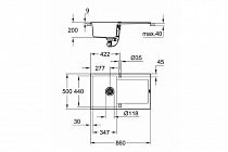 размер: 860 x 500 мм 1 чаша: 347 x 440 x 200 мм