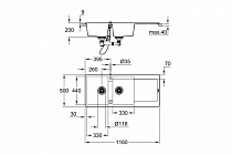 размер: 1160 x 500 мм 1 чаша: 330 x 440 x 200 мм 2 чаша: 330 x 440 x 200 мм