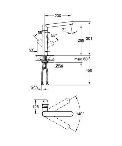 | Угол поворота рукоятки | горизонтальный 140° |