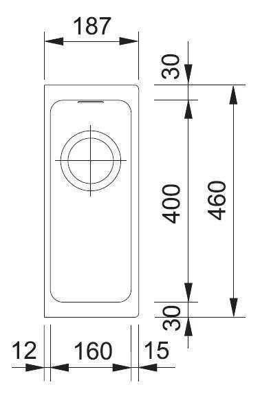 Размер мойки 187 х 460 мм