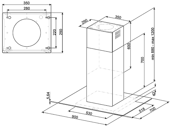 Островная вытяжка 90 см