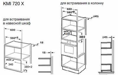 Размер ниши для встраивания(ВхШхГ): 380х560х500*/340** мм