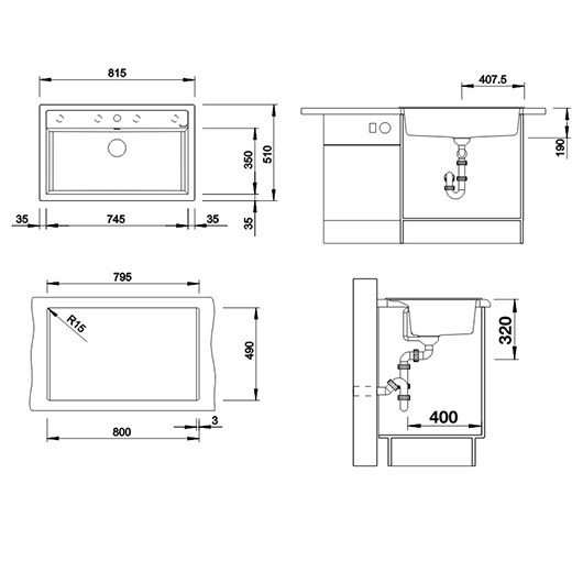 | Размер монтажного отверстия под мойку (ШхГ) | 79.5x49 см |