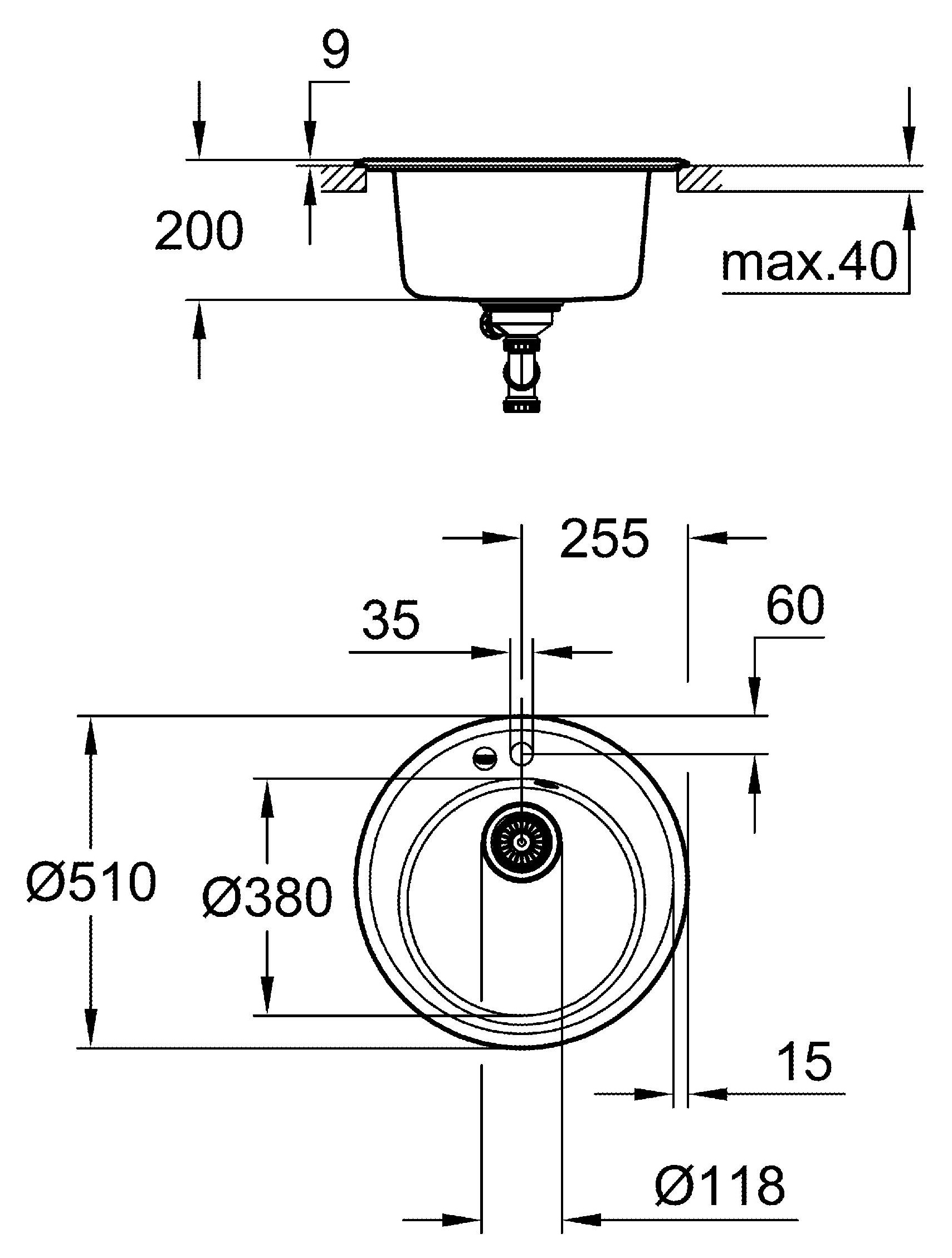 Модель: K200 50-C 51 1.0 тип монтажа: стандартная встраиваемая материал: кварцевый композит GROHE Whisper мин. размер шкафа: 500 мм размеры: Ø 510 мм 1 чаша: Ø 380 x 200 мм GROHE QuickFix быстрая монтажная система отверстие: Ø 490 мм аксессуары вкл.: сливной гарнитур, корзинчатый вентиль, монтажный набор