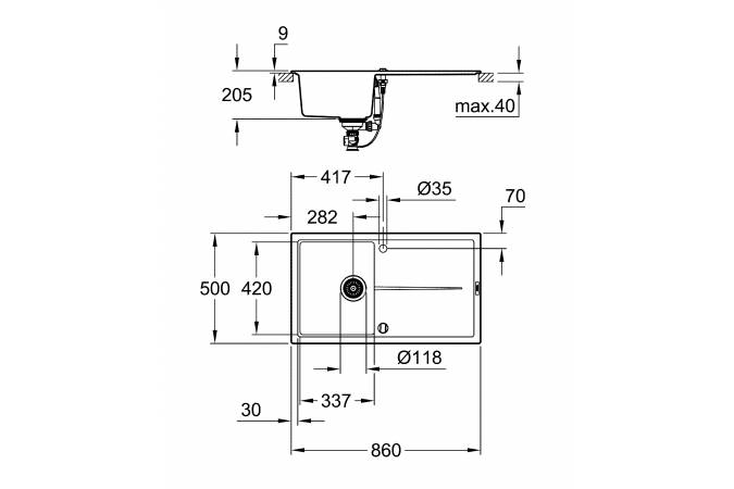 Кухонная мойка K400 50-C 86/50 1.0 черный гранит композит 31640AP0