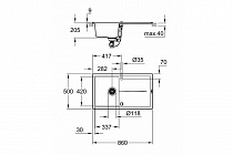 требуемый размер отверстия в столешнице для установки мойки: 840 x 480 мм