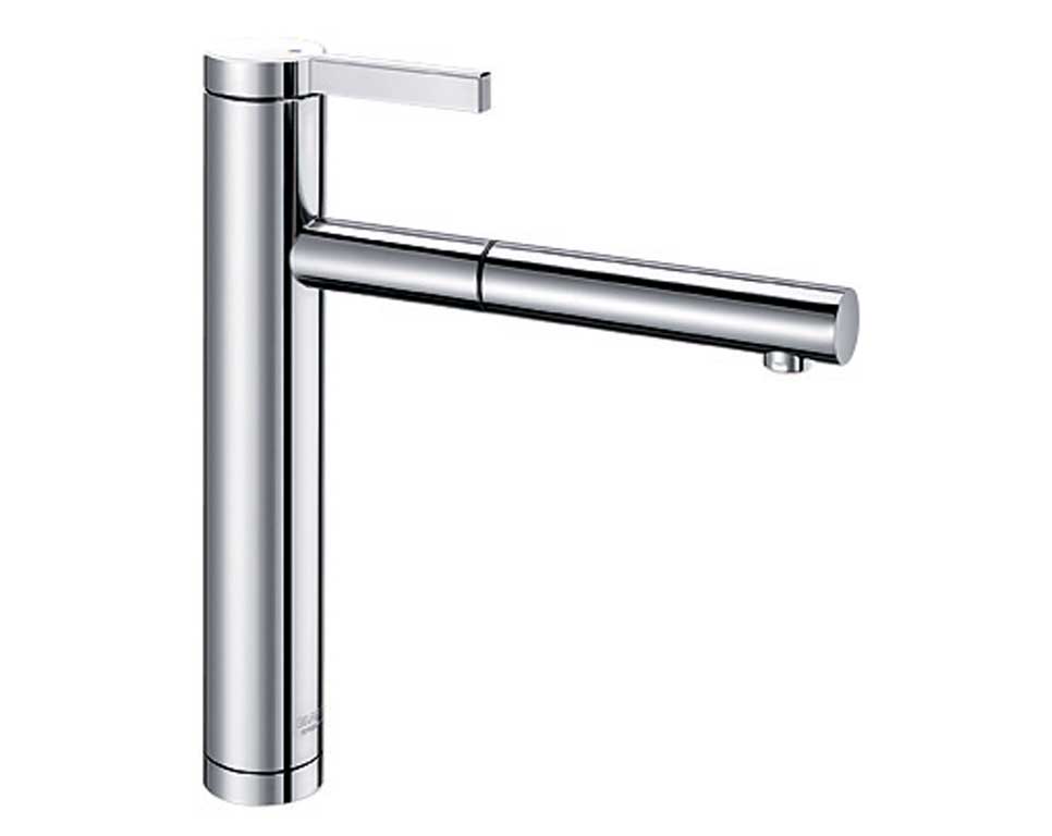 BLANCO LINEE-S нержавеющая сталь с зеркальной полировкой смеситель Изысканный смеситель Linee-S прекрасно сочетается с современными мойками DIVON, CLARON и FLOW-IF из коллекции STEELART, создавая элегантное и функциональное рабочее место на кухне. Выдвижной излив расширяет функциональные возможности смесителя, позволяя наполнять водой емкости, стоящие не в мойке, а также мыть чашу. Возвратный клапан увеличивает безопасность использования, предотвращая возврат воды. Интегрированный рассекатель благодаря специальной конструкции уменьшает образование известкового налета.