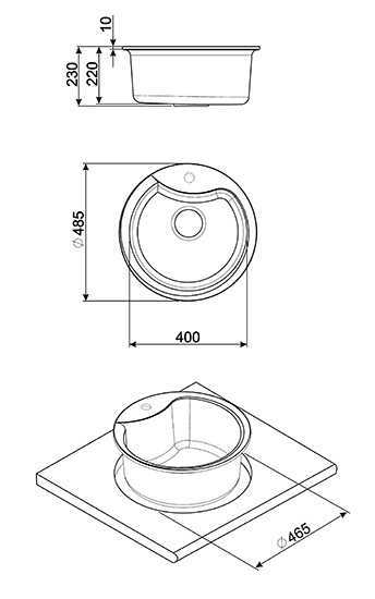 | Размер монтажного отверстия под мойку (ШхГ) | 46.5x46.5 см |