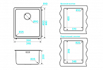 - Размер мойки: 390 х 440 мм