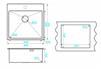 - Размер мойки: 540 х 510 мм