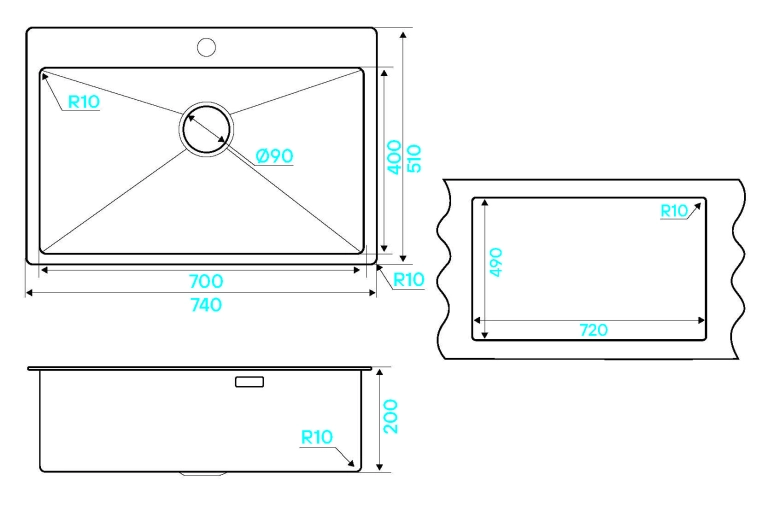 - Размер мойки: 740 х 510 мм