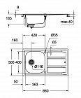 K400 Мойка из нержавеющей стали с корзинчатым вентилем модель: K400 45-S 86/50 1.0 оборачиваемая