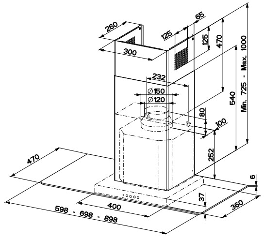 комплектуется декоративным коробом и поставляется без угольного фильтра