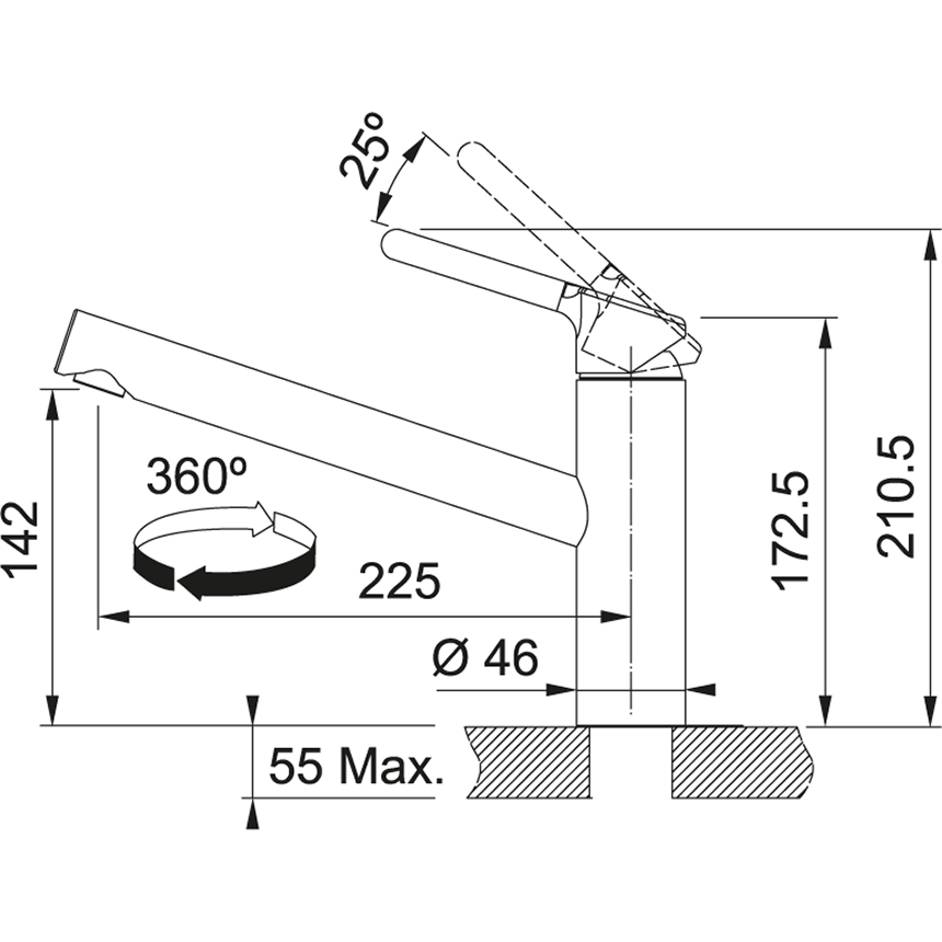 Высота смесителя 210 мм