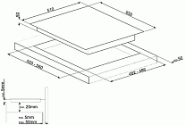 2 газовые зоны нагрева: Левая задняя - 3,1 кВт Левая передняя - 1,1 кВт Чугунные решетки 2 индукционные зоны нагрева: Правая - Multizone - 2,1 + 2,1 кВт (Booster 3,6), 460х180 мм