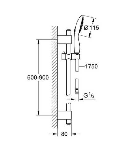 GROHE QuickFix® Plus (регулируемое расстояние между настенными креплениями штанги позволяет использовать для монтажа уже имеющиеся отверстия в стене )