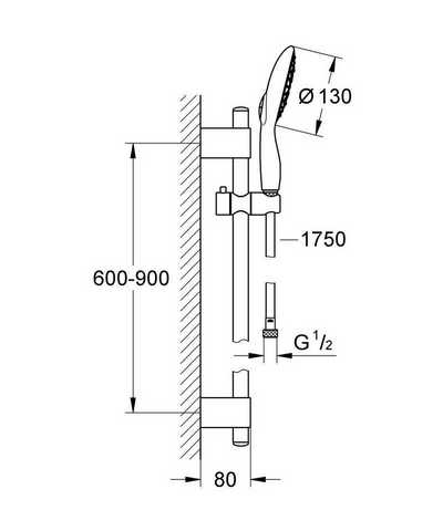 GROHE QuickFix® Plus (регулируемое расстояние между настенными креплениями штанги позволяет использовать для монтажа уже имеющиеся отверстия в стене )