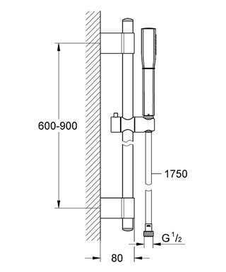GROHE QuickFix® Plus (регулируемое расстояние между настенными креплениями штанги позволяет использовать для монтажа уже имеющиеся отверстия в стене )