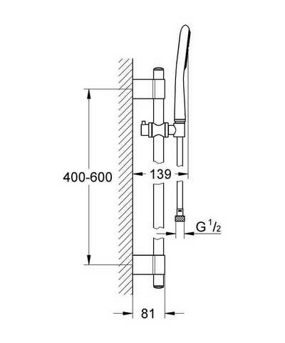 GROHE QuickFix® Plus (регулируемое расстояние между настенными креплениями штанги позволяет использовать для монтажа уже имеющиеся отверстия в стене )