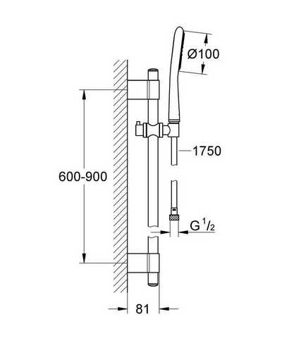 GROHE QuickFix® Plus (регулируемое расстояние между настенными креплениями штанги позволяет использовать для монтажа уже имеющиеся отверстия в стене )