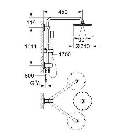Rainshower System душевая система с переключателем для настенного монтажа хром (27058000)