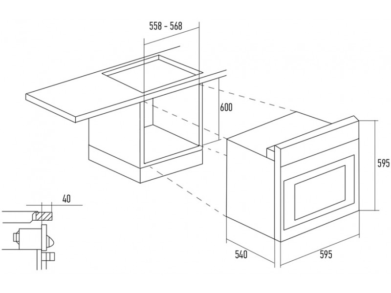 Размеры духового шкафа ( ВхШхГ) 595х595х580 мм