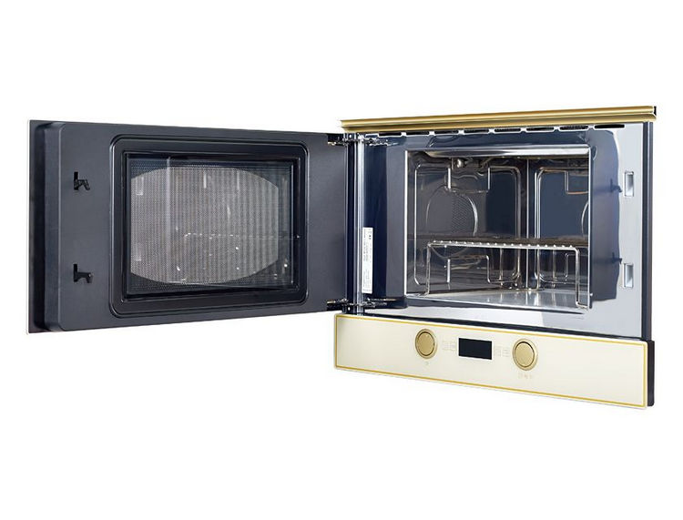 Многофункциональная микроволновая печь Kuppersberg RMW 393 C Bronze преобразит интерьер вашей кухни и подчеркнет тонкий вкус хозяев, делающих ставку на дизайн и качество. Модель представлена в нежно-бежевом цвете с бронзовой фурнитурой. Для каждого конкретного случая предусмотрены четырнадцать программ приготовления и пять уровней мощности. Комфорт при использовании печи обеспечивается наличием дверцы с системой электронного открывания.