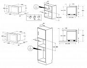 Полностью электронное сенсорное управление 12 основных режимов приготовления Мощность микроволновой печи 200-1000 В Функция памяти для 3-х режимов 6 уровней мощности Функция гриль Функция автоматического размораживания Функция ручного размораживания Многофункциональный таймер 0-90 мин Часы Внутренняя камера из нержавеющей стали Безопасная дверца с трехслойным остеклением Блокировка от детей Галогенное освещение Объем микроволновой печи :32л Принадлежности : Решетка для гриля Поворотный стол Размеры и подключение: Мощность подключения: 3,3 кВт Размеры микроволновой печи (ВxШxГ),мм: 460x595x478 Размеры ниши 450 х 560 х 550 мм