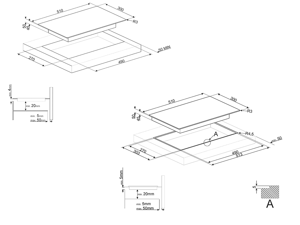Размер выреза 270 х 490 мм