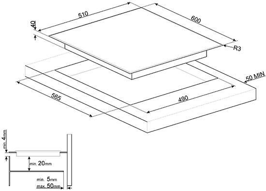 4 зоны нагрева Hi-Light: Задняя левая: 1,2 кВт, ш 148 мм Передняя левая: 1,8 кВт, ш184 мм Задняя правая: 1,0 2,2 кВт, ш 148-214 мм Передняя правая: 1,2 кВт, ш 148 мм