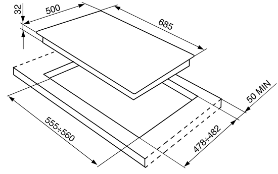 Размер выреза 555-560 х 478-482 мм