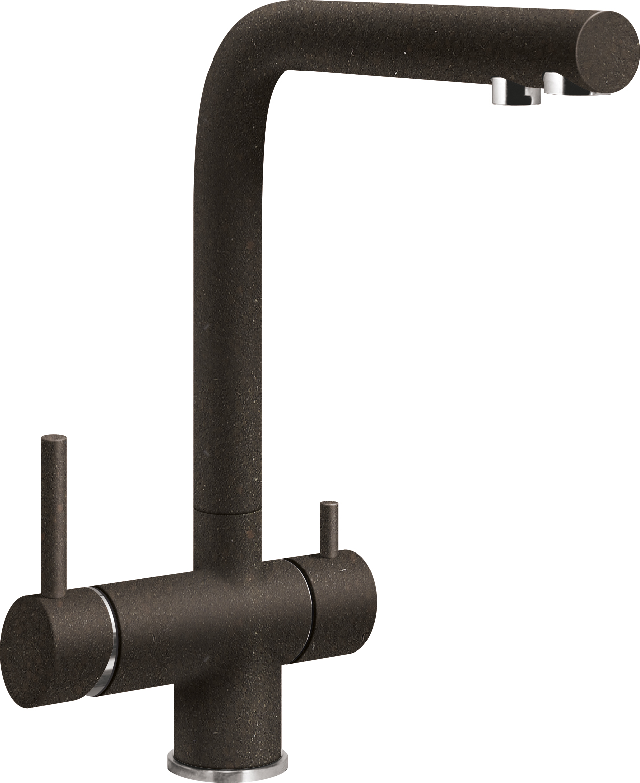 Смеситель SG14 с высоким изливом 2 в 1 с рычагом холодной и горячей воды справа и фильтрованной слева. Цвет кофе.