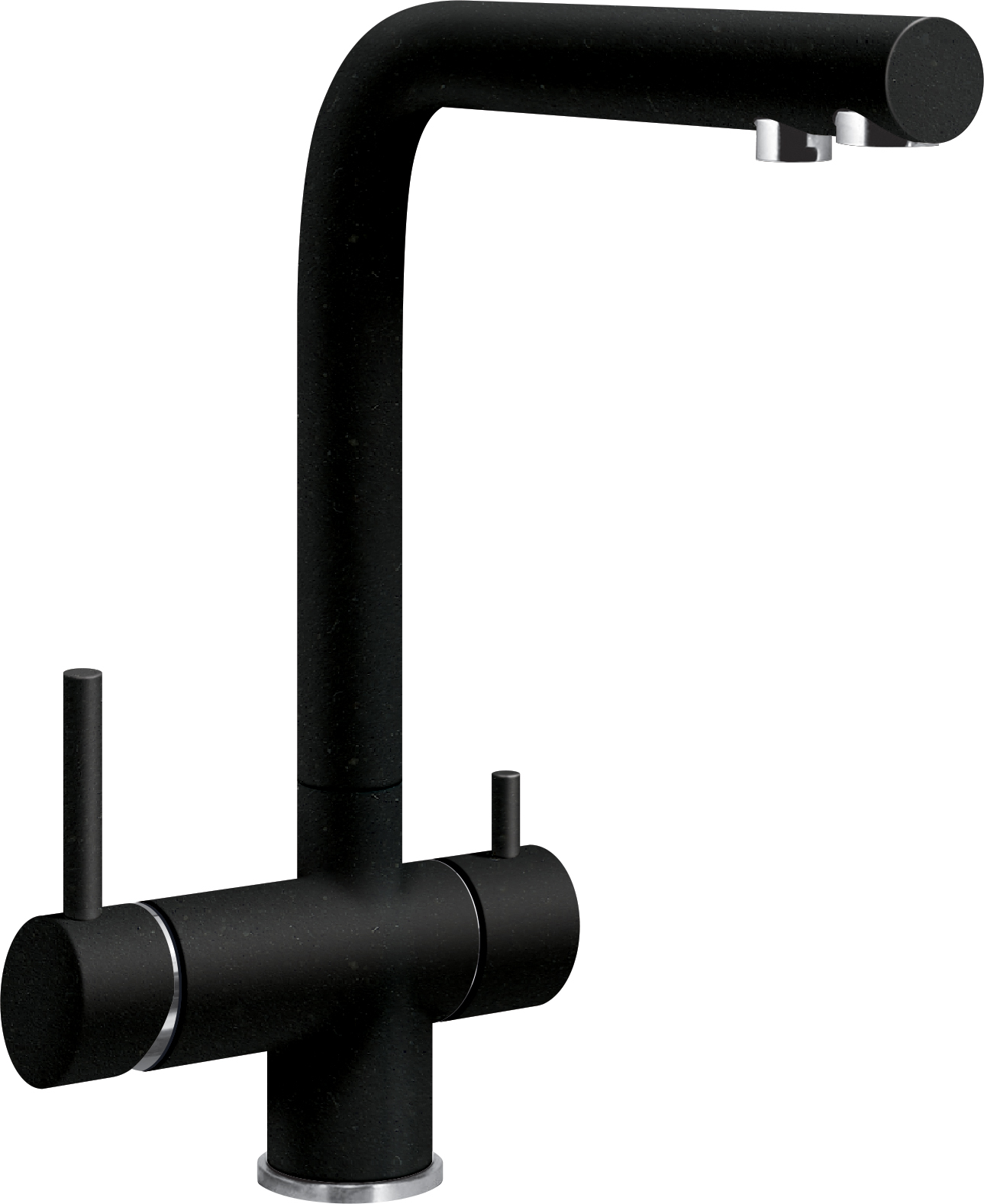 Смеситель SG14 с высоким изливом 2 в 1 с рычагом холодной и горячей воды справа и фильтрованной слева. Цвет черный металлик.