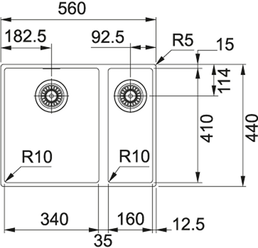 Отверстие для кнопки вентиля-автомата и смесителя : d 35мм