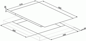 Размер выреза 880 х 490 мм