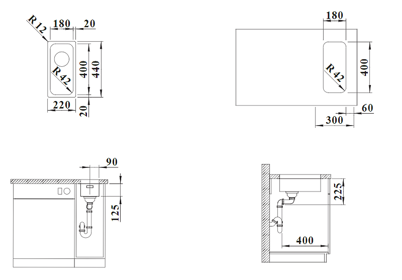 | Размер монтажного отверстия под мойку (ШхГ) | 34х40 см |