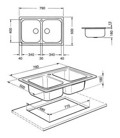 | Размер монтажного отверстия под мойку (ШхГ) | 77x48 см |