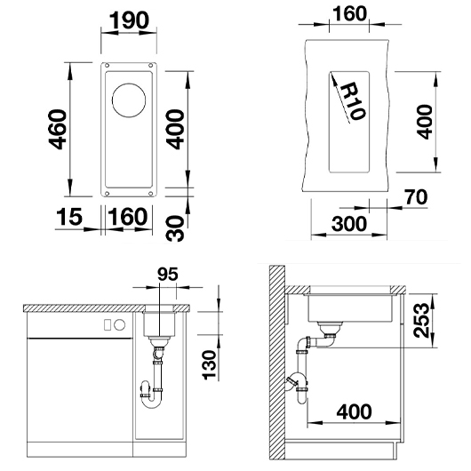 Небольшая чаша мойки Blanco Subline 160-U чаще всего комплектуется с другими мойками подстольного монтажа и служит для удобства разморозки продуктов, либо установки и использвания дополнительных аксессуаров! Чаша легко размещается как справа так и слева от основной чаши, в зависимости от вашего проекта.