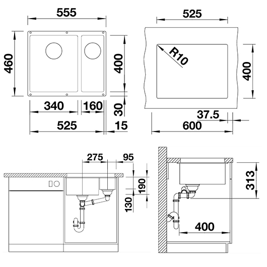 Ширина шкафа 60 смРазмеры 555 х 460 мм