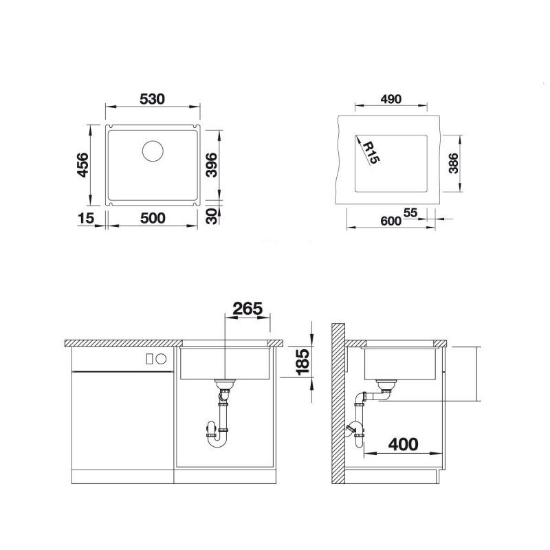 - Размеры выреза 500 х 396 мм