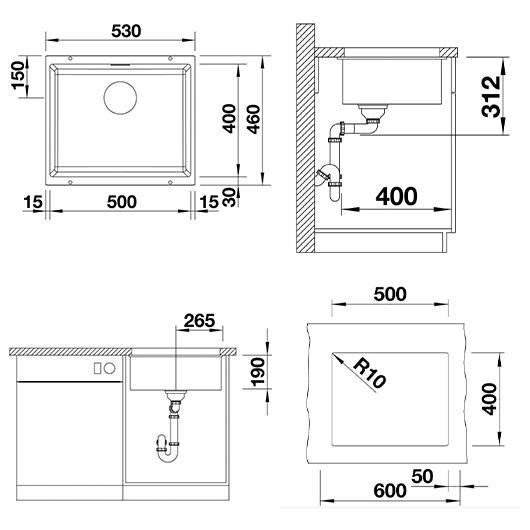| Размер монтажного отверстия под мойку (ШхГ) | 49x38.6 см |