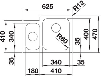 Радиус закругления чаш 60 мм