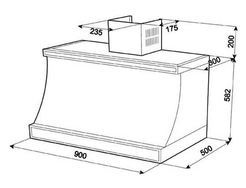 Размеры вытяжки 900 х 500 х 782 мм