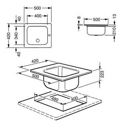 Размеры выреза: 480х400 мм