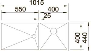 ZEROX 400/550 -T-IF InFino нержавеющая сталь зеркальная полировка правая мойка